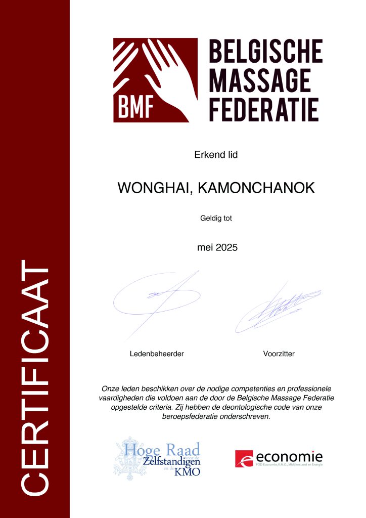 Ik ben afkomstig uit Thailand en heb 12 jaar ervaring als massage therapeute. Ik beschik over de nodig diploma’s die ik behaald heb aan het instituut Thai Traditonel medicine of Thailand.